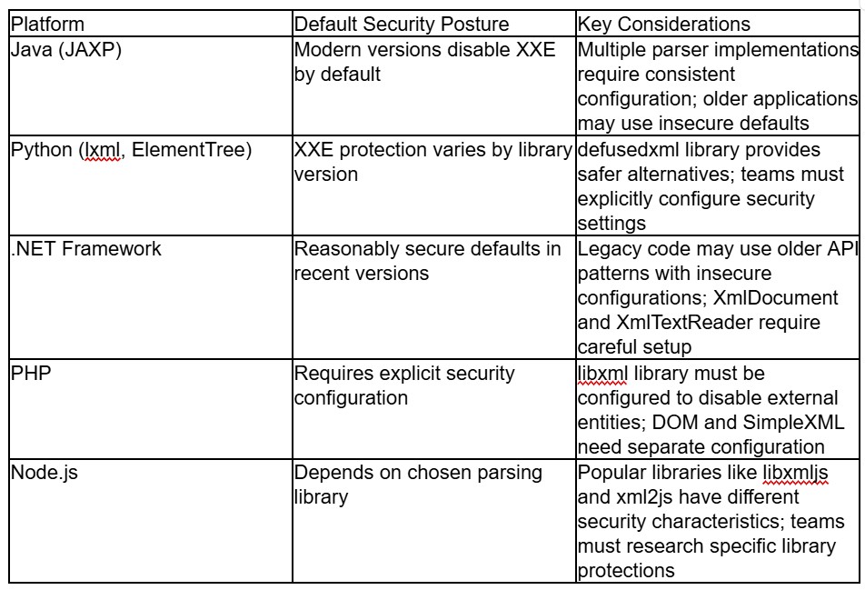 Different programming languages and frameworks provide varying levels of XML Security support. Teams should understand the strengths and limitations of their chosen technologies.